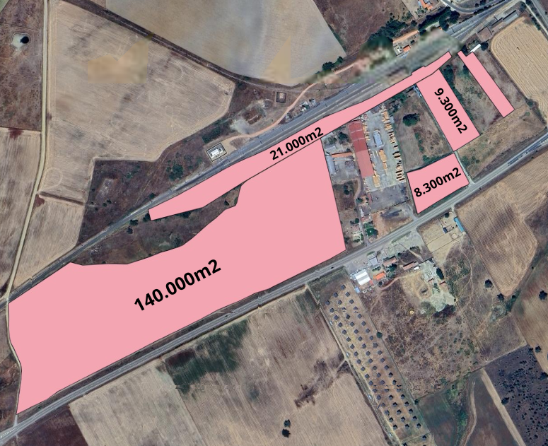 Distribución de terrenos anexos disponibles para ampliación y desarrollo logístico.